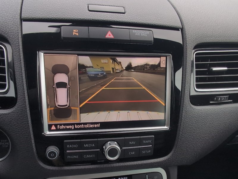 - Rückfahrkamera mit Umgebungsansicht Area View und Einparkhilfen vorne und hinten